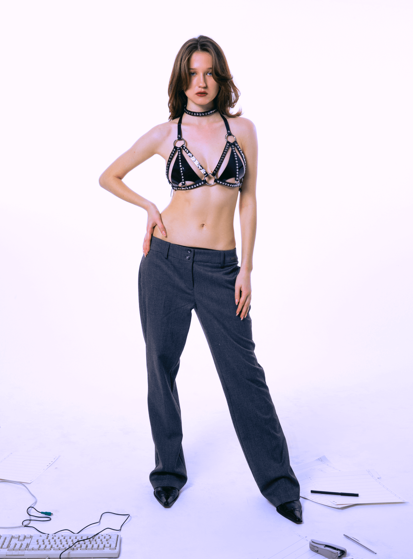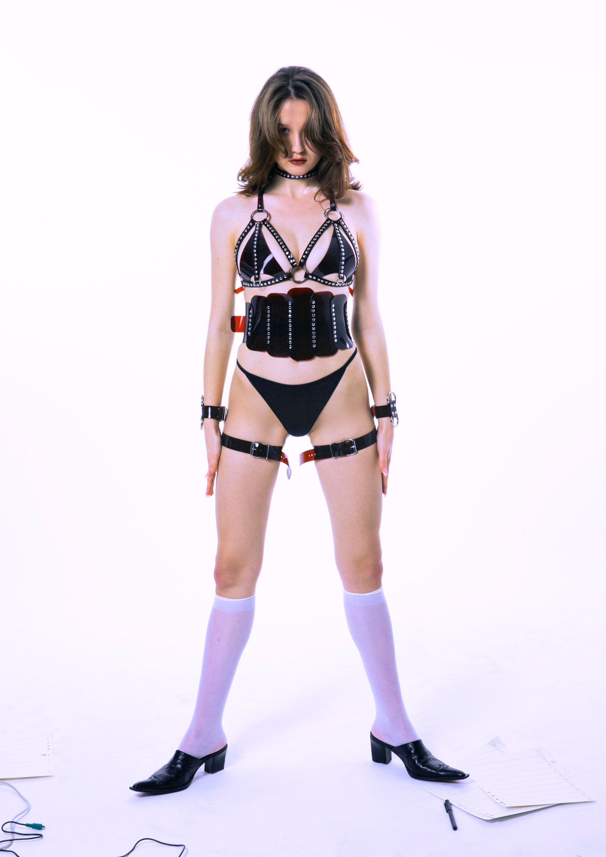 Introducing our provocative bra - a must-have for lovers of fetish aesthetics. Crafted from high-quality, vegan-friendly, and recyclable PVC, this bra offers a seductive look with adjustable fit for all body types. Perfect for clubbing, fetish events, or as a statement piece in your alternative wardrobe. Complete your bold and rebellious style with our matching skirts, garter belts, and chokers. Ethical craftsmanship paired with edgy design - elevate your look today.